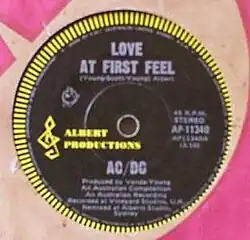 "Love at First Feel" is a song by Australian hard rock band AC/DC. It is the second track of the international version of their album Dirty Deeds Done Dirt Cheap, released in November 1976, and was written by Angus Young, Malcolm Young, and Bon Scott. The international version was not released in the United States until 1981.