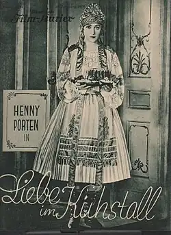 Love in the Cowshed (German: Liebe im Kuhstall) is a 1928 German silent drama film directed by Carl Froelich and starring Henny Porten, Toni Tetzlaff and Eugen Neufeld.[1] The film's art direction was by Gustav A. Knauer and Willy Schiller. It was distributed by the German branch of Universal Pictures.