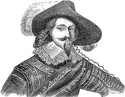 Christian IV of Denmark (1577–1648) wore a lovelock, possibly because of a medical condition plica polonica, and others in his court copied it, making it a Danish court fashion.[5] His brother-in-law James I of England (1566–1625) wore a lovelock,[6] and at the court of his son, Charles I (1600–1649) many courtiers (including women) wore them in the French fashion (where they were called cadenette). Charles I can be seen wearing one in the Triple portrait by Antony van Dyck, where a large pearl can be seen suspended from the end of the lock.[4]