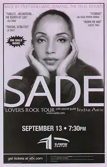 - ^ a b c d Zahlaway, Jon (14 May 2001). "Sade beefs up tour route, taps India.Arie for opening slot". LiveDaily. Ticketmaster Entertainment, Inc. Archived from the original on 22 May 2001. Retrieved 15 September 2012.