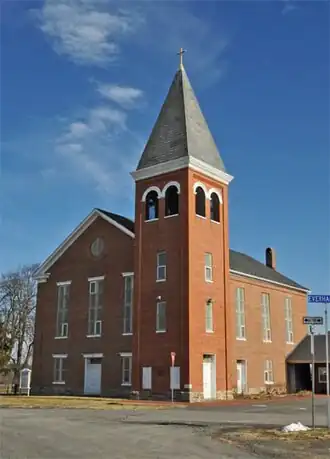 Lovettsville Historic District is a national historic district located at Lovettsville, Loudoun County, Virginia. It contains 174 contributing buildings, 5 contributing sites, and 2 contributing structures in a primarily residential section of Lovettsville. Most contributing resources consist of residences and associated outbuildings dating from the early-19th to early-20th centuries. They are vernacular interpretations of a variety of popular architectural styles including Federal, Queen Anne, Italianate, Romanesque, and Bungalow. Notable resources include the Lovettsville Union Cemetery, First German Reformed Church site and cemetery, New Jerusalem Lutheran Church (1869, 1903) and cemetery, Union Cemetery, African-American Methodist Episcopal Church (c. 1870) and cemetery, Presbyterian cemetery, Lovettsville Masonic Lodge (1869, 1923), former Grubbs Store (c. 1870), former Red Men's Lodge (1923), and Willard Hall (c. 1820).[3]