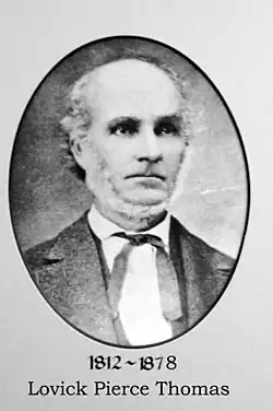 Lovick P. Thomas (May 12, 1812 – May 24, 1878), was a quartermaster in the Confederate Army of the Confederate States of America, 1861–1863 and the father of famed American Old West Deputy U.S. Marshal Heck Thomas. His brother was Confederate Army Brigadier General Edward Lloyd Thomas.