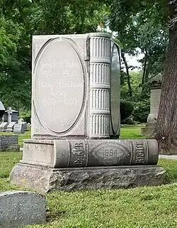Roadways in the cemetery were laid out to take advantage of the natural terrain, occasionally providing vistas. The main circulation route, Washington Avenue, roughly encircles the property, with several roads providing access across the central areas. The cemetery was laid out in 1841 to a design by George P. Worcester, a civil engineer, applying principles of the rural cemetery movement that was then just coming into vogue. The cemetery has a wide variety of funerary art in diverse styles, from typical Victorian forms to the Egyptian Revival and Art Deco. Many prominent Lowell residents of the 19th and 20th centuries are interred here.[2]
