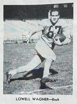 Lowell Wagner (August 21, 1923 – September 26, 2005) was an American professional football player who was a cornerback in the All-America Football Conference (AAFC) and the National Football League (NFL). He played college football for the USC Trojans. Wagner played 11 seasons for the AAFC's New York Yankees (1946–1948) and AAFC and NFL's San Francisco 49ers (1949–1955).