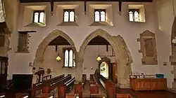 An opening high in the wall west of the south arcade suggests that the nave once had a west gallery. This has been removed, as has the rood and rood loft, but the 15th-century wooden screen to the chancel survives.