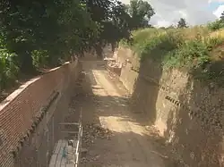 The park preserves many 19th- and 20th-century military relics. The original Lower Lines dry moat runs along the west side of the park; a reconstructed military-style footbridge now spans this trench.[30] Sections of the brick-lined ditch (Napoleonic bastion ramparts) survive intact, and interpretive panels mark their route. In the southern part of the park is a broad dip in the ramparts – a wide "moat" feature – which was part of the original defenses.[30]