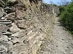 23. Ideal example of a dry stone wall. Built with stone broken on the spot. Hatzenporter Burg Bischofsteiner