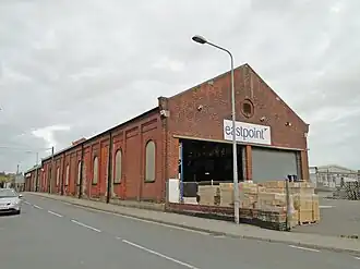 A branch from this north–south route ran westward from the Suffolk Hotel on station square along Denmark Road to the depot in Rotterdam Road, with the entrance opposite the end of Essex Road. The shed was four lanes with a glass peak to the roof. The lines were still in situ in the depot's shed and yard during the 1960s when the depot was being used for Lowestoft Corporation buses.[8] In 2009 the shed building was still being used, but not as a shelter for public transport vehicles.