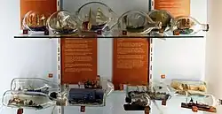 The exhibits on display include a wide range of maritime artefacts including a display of medals awarded to naval and RNLI personnel, a large display of marine art and ships in bottles, the fishing industry in Lowestoft and the town's involvement with the Royal Navy in World War II, a workbench of shipwrights and coopers tools, an extensive collection of ship models in various scales, the workshop of Christopher Cockerell, the inventor of the hovercraft, reassembled at the museum following his death in 1999 and which displays his original tools and machinery including his left-handed lathe,[11] a display about Robert William Hook (1828–1911), coxswain at RNLI Lowestoft from 1853 to 1883 who was credited with saving more than 600 lives during his career, and a small display dedicated to Thomas Crisp, a local man who posthumously won the Victoria Cross during World War I,[12] including his original Memorial Plaque.