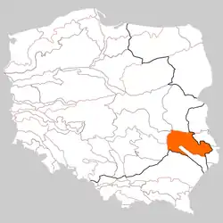 Lublin Upland (Polish: Wyżyna Lubelska) is a geographical region in southeastern Poland, located in Lublin Voivodeship, between the rivers Vistula and Bug, around the city of Lublin. Its area is about 7,200 km2 and its highest elevation is 314 m above sea level. It is located in Lublin Voivodeship. In its southern portion it becomes the Roztocze range, and in the north, it turns into Lublin Polesie (Polesie Lubelskie). Biggest cities of the region are Lublin, Chełm, Zamość, Puławy, and Kraśnik. In some geography works, the term Lublin Upland (or (Eastern Lesser Poland Upland, Wyzyna Wschodniomalopolska) is used to describe all Polish uplands located east of the Vistula river. In this case, Roztocze, with its highest point (Wielki Dzial, 390 meters above sea level) also makes part of Lublin Upland.