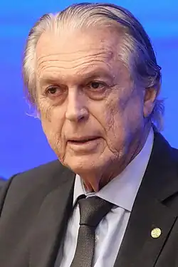 Luciano Caldas Bivar (born 29 November 1944) is a Brazilian politician and businessman. He is current a Deputy for Pernambuco as well as leader of the Brazil Union. Previously he was Social Liberal Party presidential candidate for the 2006 Brazilian general election. He received 0.06% of the total vote and did not progress to the second round.[1] He was President of the Social Liberal Party from 2018 until it merged with the Democrats to become the Brazil Union.