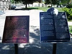 In 1833, Thornton was discovered as a fugitive slave in Detroit and he and his wife were arrested.[1] They were jailed on Forth Street when local blacks intervened.[2] Their arrest angered the emerging black populace in Detroit as well as allies of the anti-slavery movement.[1] The Michigan government demanded for Lucie and her husband to return where they were jailed, what is now part of Windsor. Lieutenant Governor Sir John Colborne and his council ordered for the Blackburns to be set free. Their landmark extradition led to the creation of Canada's first refuge reception policy.[3] A woman named Mrs. Madison Lightfoot and the wife of Reverend George French visited Lucie Blackburn when she was in jail. They assisted her by exchanging clothing to take her place, which helped Lucie escape jail. Once she escaped, she was able to cross the Detroit River, entering Ontario, Canada. Thornton was rescued on June 15, 1833, by 400 abolitionists. This mob incited the Blackburn Riot. The rescuers took Thorton from the sheriff's custody to Randolf Street wharf, where an agent exchanged a gold watch for Thornton's freedom and passage. The couple was reunited in Toronto and settled on Eastern Avenue, which became their home of nearly 50 years.[2] This event marked Detroit's first racial protest in history. Both Thornton and Lucie were smuggled out of the United States into Upper Canada, and reunited in Montréal.[4]