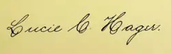 This article incorporates text from this source, which is in the public domain: Willard, Frances Elizabeth; Livermore, Mary Ashton Rice (1893). "Lucie Caroline Hager". A Woman of the Century: Fourteen Hundred-seventy Biographical Sketches Accompanied by Portraits of Leading American Women in All Walks of Life (Public domain ed.). Charles Wells Moulton.