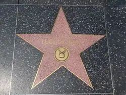 Ball received many tributes, honors, and awards throughout her career and posthumously. On February 8, 1960, she was given two stars on the Hollywood Walk of Fame: at 6436 Hollywood Boulevard, for contributions to motion pictures; and at 6100 Hollywood Boulevard, for her contribution to the arts and sciences of television.[3] In 1964, Ball and her second husband Morton attended "Lucy Day", a celebration in her honor held by the New York World's Fair.[108]