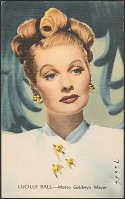 In 1942, Ball starred opposite Henry Fonda in The Big Street.[46] MGM producer Arthur Freed purchased the Broadway hit musical play Du Barry Was a Lady (1943) especially for Ann Sothern, but when she turned down the part, that role went to Ball, Sothern's real-life best friend. In 1943, Ball portrayed herself in Best Foot Forward. In 1945, she appeared in a brief but prominent role in a dance sequence in Ziegfeld Follies. In 1946, Ball starred in Lover Come Back and the film noir The Dark Corner. In 1947, she appeared in the murder mystery Lured as Sandra Carpenter, a taxi dancer in London.[38] In 1948, Ball was cast as Liz Cooper, a wacky wife in My Favorite Husband, a radio comedy for CBS Radio.[38] (At first, the character's name was Liz Cugat; this was changed because of confusion with real-life bandleader Xavier Cugat, who sued.[47])