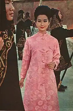 As part of the movie's publicity, she appeared in a photo spread in the American magazine Look, modeling clothing designed by Dynasty of Hong Kong on the film set.[5] The publicity department also organized a "Miss Oriental Contest" competition for Chinese women in Spain. She won, and was crowned "Señorita Oriente". Returning to London, in 1963 she became the first Chinese model in the English Models Directory, and pursued careers in modelling and acting. [4][2]