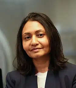 Dr. Uddin was born in Bangladesh.[1][2] Her parents immigrated with her to the United States when she was less than one year old, and Uddin spent her childhood in Southern California.[1] She was an undergraduate student at the University of California, Los Angeles (UCLA), where she majored in neuroscience and minored in philosophy. She stayed at UCLA for graduate school, where she explored neural correlates of self-recognition working with Eran Zaidel and Marco Iacoboni.[3][4] During her graduate studies she worked alongside Susan Y. Bookheimer and Mirella Dapretto on neuroimaging studies to better understand autism spectrum disorder.[1][5] She moved to New York as a postdoctoral scholar, where she worked with Francisco Xavier Castellanos in the Child Study Center.[6] In 2008 she continued her postdoctoral studies at Stanford University, where she worked in the research group of Vinod Menon.[7]