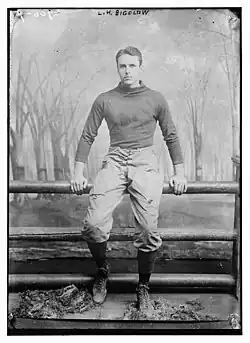 In 1912, a newspaper article on the greatest football players produced by Yale referred to the "brilliant Ray Bigelow" who was "always just a little better than anyone than any who played against him."[15] Biglow remained an active supporter of Yale football and, in 1915, created a "sensation" when he advocated hiring of Foster Sanford as the school's head football coach in a letter to the Yale Daily News.[8][16]