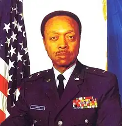 His tour of duty began in World War II as a private in the Army Air Corps. He retired as a Major General. His service career included stops in Tuskegee, Germany, France, Greece, and Vietnam, and led him to command of the Air Force Accounting and Finance Center and an Assistant Directorship of the Defense Security Assistance Agency.[2]