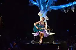 American singer-songwriter Taylor Swift performed the song on her Speak Now World Tour on September 20, 2011, located in Louisiana, as a tribute to Spears.[33][34] In 2018, for her song "Delicate", Billboard drew parallels between the songs writing: "The clip features the singer in several situations – in an interview on a red carpet, surrounded by fans, flanked by bodyguards, and alone in a hotel room making funny faces – clearly disturbed by her fame, calling back to Britney Spears' 'Lucky.'" [35] Swift also references the song in her track from her 2012 album Red, "The Lucky One".[36]