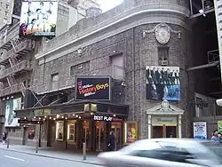 Previews for Lucky Guy began at the Broadhurst Theatre on March 1, 2013,[22] without an out-of-town tryout.[23] During previews, the play grossed an unusually high (for a non-musical) $1 million per week and by the time the play debuted it had stockpiled $10 million in advance ticket sales.[14] The play debuted on Broadway at the Broadhurst Theatre on April 1, 2013 after 33 previews. It was directed by Wolfe,[24] with Hanks starring as McAlary,[25][26] receiving $150,000 per week for his 12.5% share of the gross.[23] On May 2, 2013, it was announced that Lucky Guy had recouped its $3.6 million capitalization costs.[27] Although regular ticket prices for Lucky Guy started at $87 and went up to $152, the production was able to take advantage of the Broadway pricing strategy in which "premium" ticket prices fluctuate to balance supply and demand, and premium tickets ranged from $225 to $350, with standing-room only tickets also becoming popular.[23] Originally scheduled to run until June 16, 2013, the play was extended to July 3.[28][29] The run ended with a total of 33 previews and 104 regular performances. The show grossed $22,992,145 for an audience of 163,710 patrons in these 104 performances.[30]