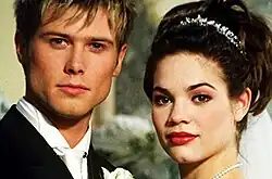 Lucky and Elizabeth first made a supercouple name for themselves during the storyline of Elizabeth's rape in 1998.[48] The young couple was compared to the romance of Lucky's parents Luke and Laura, notorious supercouple of the 1980s.[49][50] As a result, they are commonly referred to by the portmanteau "L&L" or "L&L2" on internet message boards.[49] Similar to the nuances of other supercouples, Lucky always calls Liz by a certain name, a popular detail to fans. Jackson explained to Soap Opera Magazine that it was his idea: "I just made a decision that I wanted to call her Elizabeth. I don't know why. I really like the name. I think it's beautiful – and I also think she has a different relationship with him. Everyone else may call her Liz, but to him she's Elizabeth."[47] As the on-screen couple took the start of their relationship slow, their popularity with fans grew quickly. The gradual timing of the relationship was one reason for the popularity, as viewers watched them blossom from friends to something more.[51][52] The slow progression made viewers feel the relationship was honest and innocent, something unique among soap opera couples at the time.[53] Jackson described in a 1999 interview, “What's been portrayed is what people want to see. A kind of pure romance and pure love."[53] Herbst commented to Soap Opera Digest in 1998: "I think one of the reasons why people like them so much is because their relationship is so healthy. (...) Individually they have their own issues and problems that they need to work out. But I think people like seeing that – they like seeing them work out their problems together."[51] Elizabeth and Lucky first grow close as friends, while Lucky helps Liz deal with her rape and Liz helps Lucky deal with his family issues. Another factor in the couple's rise to supercouple status was the chemistry between original portrayers of the couple, Herbst and Jackson.[12][54] Their chemistry grew as they bonded during Elizabeth's rape. Herbst explained in a 1998 interview: