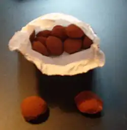 The Lucky Tattie is a type of traditional sweet made in Scotland. The lucky tattie is made of a white fondant solid core flavoured with cassia, and steamed and covered with cinnamon powder.[1] The tattie used to contain a small plastic lucky charm in the centre (like a tiny animal or toy), hence the lucky. Due to health and safety concerns they were removed.[2]