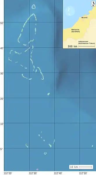 - ^ "Luconia Shoals" (PDF). Malaysia Fisheries Research Institute. Archived from the original (PDF) on 2014-05-20. Retrieved 9 June 2015.