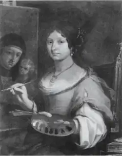 Lucrezia Scarfaglia (active 1677–1678) was a Bolognese painter of the 17th century. Almost nothing is known of her life and career save that she was a pupil of Elisabetta Sirani, after whose death she took lessons with Domenico Maria Canuti. She was described by Carlo Cesare Malvasia as "not a mediocre painter".[1] In his Felsina pittrice, Malvasia lists a number of works by Scarfaglia's hand, including a handful of religious works and a portrait of Eleanora Gonzaga.[2] Surviving is a self-portrait, signed and dated 1678, in which she depicts herself painting the Madonna of Saint Luke. This piece is in an archaic style reminiscent of sixteenth-century paintings; it is currently held by the Galleria Pallavicini in Rome.[1]