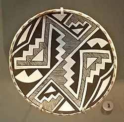 Lewis' designs were inspired by Ancestral Puebloans (Anasazi), including the Mimbres designs of the Mogollon as well as the Chacoan culture.[1][5] Her work first began to be recognized outside of the Acoma Pueblo in 1950, when she won the a blue ribbon at the annual Gallup Intertribal Ceremonial.[3] After the Gallup prize, Lewis began to sign her work, an act which created controversy within the Pueblo community.[6][3] Four pieces of her pottery were featured on an episode of Antiques Roadshow and were appraised for between $10,000 to $18,000 for the set.[7]