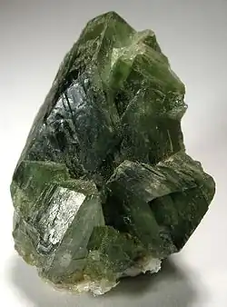 Ludlamite is a rare phosphate mineral with chemical formula (Fe,Mn,Mg)3(PO4)2·4H2O. It was first described in 1877 for an occurrence in Wheal Jane mine in Cornwall, England and named for English mineralogist Henry Ludlam (1824–1880).