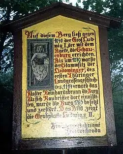 Around 1040 Louis the Bearded received a fief north of the Thuringian Forest and had the (now ruined) castle of Schauenburg near Friedrichroda. However these origins are legendary and based solely on unverifiable Reinhardsbrunn sources.