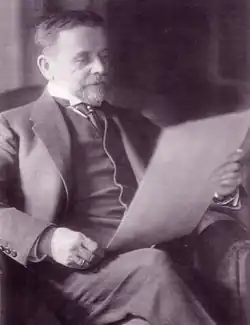 Ludwig Hoffmann was born in Darmstadt and educated at the Kunstakademie Kassel (Kassel Academy of Art) and the Bauakademie (Academy of Architecture) in Berlin.[1] In 1879, after passing the first state examination, Hoffmann began working for the government of Berlin as a construction foreman under Franz Heinrich Schwechten.[2][3] His architectural career began in 1880 when he and Peter Dybwad, both unknowns, won the competition to design the Supreme Court building in Leipzig against 118 other entries.[4][5][6][7] In 1895, the year it was completed, he returned to Berlin and that June married Marie Weisbach, a banker's daughter.[7][8]