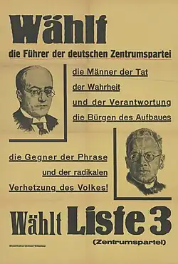 In 1932 Kaas and Brüning led the Centre Party into opposition to the new Chancellor: party renegade Franz von Papen. Kaas called him the "Ephialtes of the Centre Party".[10] Kaas tried to re-establish a working parliament by cooperation with the National Socialists.