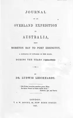 - ^ Leichhardt, Ludwig (1847). Journal of an overland expedition in Australia, from Moreton Bay to Port Essington during the years 1844-1845. London: T. & W. Boone.