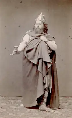 Schnorr von Carolsfeld was also admired for his work in the operas of Giuseppe Verdi.[1] In 1860 he portrayed Manrico in the Dresden premiere of Verdi's Il trovatore.[2] Other roles in his repertoire varied from lighter lyric tenor parts to heavier dramatic roles, including Pollione in Norma, Tamino in The Magic Flute, Arnold in Guillaume Tell, Edgardo in Lucia di Lammermoor, Floristan in Fidelio, Gennaro in Lucrezia Borgia, John of Leyden in Le Prophète, and Raoul in Les Huguenots.[6]