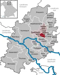 BayreuthKronach (district)Hof (district)Bayreuth (district)Lichtenfels (district)MainleusWonseesWirsbergUntersteinachTrebgastThurnauRugendorfNeuenmarktNeudrossenfeldKulmbachKödnitzKasendorfHimmelkronHarsdorfGuttenbergGrafengehaigPresseckStadtsteinachMarktschorgastMarktleugastLudwigschorgastKupferbergThuringia