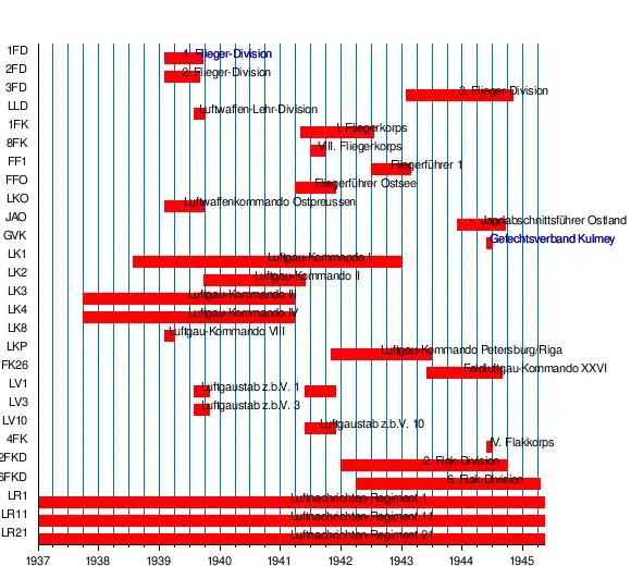 Luftflotte 1 ("Air Fleet 1") was one of the primary divisions of the German Luftwaffe in World War II. It was formed on 1 February 1939 from Luftwaffengruppenkommando 1 in Berlin. This Luftwaffe detachment served in Estonia, Latvia, Lithuania and Finland, supporting Axis forces in area; with command offices in Malpils, Latvia, (26 June 1944), Eastern front.