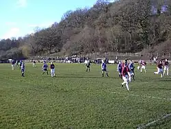 The Jaggy Bunnets as they are nicknamed enjoyed a successful period in the 1950s. The club reached the semi-final of the Scottish Junior Cup in 1952, losing to Kilbirnie Ladeside after a replay with one tie attracting a then record attendance of over 30,000 to Rugby Park, Kilmarnock.[6] In 1956, the club made it all the way to the final, with Thistle losing 4–1 to Petershill at Hampden Park in front of a crowd of 64,702.[7] The current population of Lugar is 221.[8]