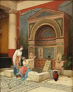 ![]() Women feeding fish in a Pompeian Atrium by Luigi Bazzani | |