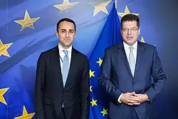 Luigi Di Maio (Italian pronunciation: [luˈiːdʒi di ˈmaːjo]; born 6 July 1986) is an Italian politician who has been serving as EU Special Representative for the Gulf region since 1 June 2023. Di Maio also served as Minister of Foreign Affairs from 2019 to 2022, as Deputy Prime Minister of Italy and Minister of Economic Development, Labour and Social Policies from 2018 to 2019, and as Vice President of the Chamber of Deputies in the 17th Italian legislature.