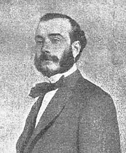 It is not clear when Llauder commenced his lifelong career of a publisher and a journalist.[25] One author maintains that it was "shortly after" graduation when he tried his hand in letters, starting co-operation with local periodicals.[26] The first titles named are popular Catholic reviews La Sociedad Católica,[27] El Amigo del Pueblo and El Criterio Católico,[28] and the time is specified as "second half of the 1860s".[29] It seems that at that time he was formatted as a militant Catholic author rather than a partisan of any specific party. His opinion on politics of the era, especially on the crumbling rule of Isabel II, is not known. It was only the Glorious Revolution of 1868 and declaration of the First Spanish Republic that triggered Llauder's political career.