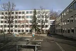 The Luitpold-Gymnasium[1] is a secondary school in Munich, Germany. It is located in the Lehel city district, close to Munich's Old Town, and has a long tradition. Established by Prince Luitpold of Bavaria in 1891 as "Luitpold-Kreisrealschule" to serve the eastern part of the city and its suburbs, it originally stood in the Alexandrastrasse opposite the National Museum. The building was completely destroyed by incendiary bombing in 1944, leaving only parts of the outside walls and gymnasium (sports hall). After sharing the facilities of the Wilhelmsgymnasium, the high school was moved to the new building on Seeaustraße 1 in 1958. It introduced the Kollegstufe system in 1975, permitting an individual course of study during the last two years before graduation, and became co-educational in 1983.