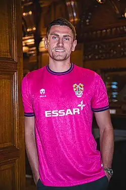 ![]() McGee modelling the Tranmere Rovers goalkeeper kit for the 2024/25 season. | |||