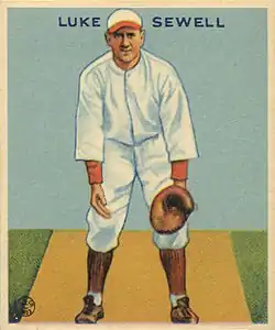 James Luther "Luke" Sewell (January 5, 1901 – May 14, 1987) was an American professional baseball player, coach, and manager. He played in Major League Baseball as a catcher for the Cleveland Indians (1921–1932, 1939), Washington Senators (1933–1934), Chicago White Sox (1935–1938), and the St. Louis Browns (1942). Sewell batted and threw right-handed. He was regarded as one of the best defensive catchers of his era.[1]