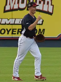 In the minor leagues through 2021 he had played 303 games at third base, 55 games at second base, 47 games in left field, 38 games in right field, 18 games in center field, 16 games at first base, and 14 games at shortstop.[13] He carries 8 gloves in his equipment bag.[23]
