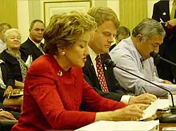 The Lumbee resumed lobbying Congress, testifying in 1988, 1989, 1991 and 1993 in efforts to gain full federal recognition by congressional action.[56] All of these attempts failed in the face of opposition by the Department of Interior, the recognized Cherokee tribes (including North Carolina's Eastern Band of Cherokee Indians), some of the North Carolina Congressional delegation, and some representatives from other states with federally recognized tribes. Some of the North Carolina delegation separately recommended an amendment to the 1956 Act that would enable the Lumbee to apply to the Department of Interior under the regular administrative process for recognition.[56] In 2004 and 2006 the tribe made renewed bids for full recognition, to include financial benefits.[57]
