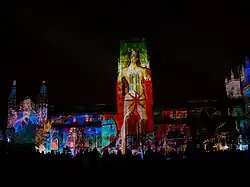Lumiere is the UK's largest light festival.[1] The festival, produced by London-based creative company Artichoke, debuted in Durham in 2009.[2] The festival was part inspired by the Fête des lumières in Lyon.[3] Hosted in winter time, and free to attend, the festival typically comprises a number of light art-installations, as well as illuminating iconic buildings and locations.[4] The festival takes place biennially in November in Durham,[5] and since 2013 has occasionally toured to other locations, both reusing popular illuminations from Durham and creating new bespoke installations.