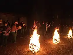 The name of the decoration is a long-running item of contention among some New Mexicans,[5] with written accounts indicating it was already a familiar topic of debate as far back as the 1940s.[6][7] In Northern New Mexico, the term luminaria is reserved for a small festival or vigil bonfire,[8] a usage which dates back to the Spanish colonial period,[9] and the paper lantern decorations are called farolitos. Many traditionalists insist that the use of luminaria to mean a paper lantern is not correct.[5] However, this distinction is not commonly made outside of northern New Mexico.[10] In other areas where the decorations are used, they are generally referred to as luminarias.