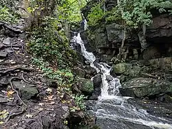 Lumsdale Falls is a scenic natural cascade below the Lower Pond.